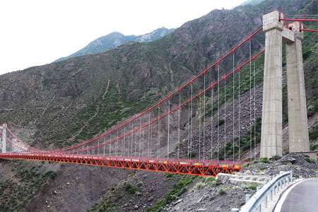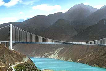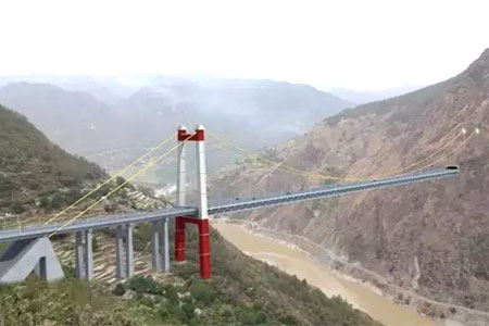 西藏角籠壩大橋長(zhǎng)357.2米,主跨345米,引橋長(zhǎng)1.9公里,是西藏境內(nèi)...