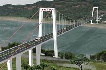 宜賓市南溪長(zhǎng)江大橋主跨820米,鋼混結(jié)構(gòu)橋面。...