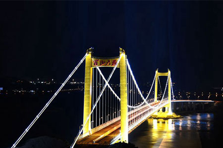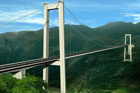 貴州壩陵河大橋主橋?yàn)?088米鋼桁架懸索橋,橋梁全長2237米,東岸引橋長940...