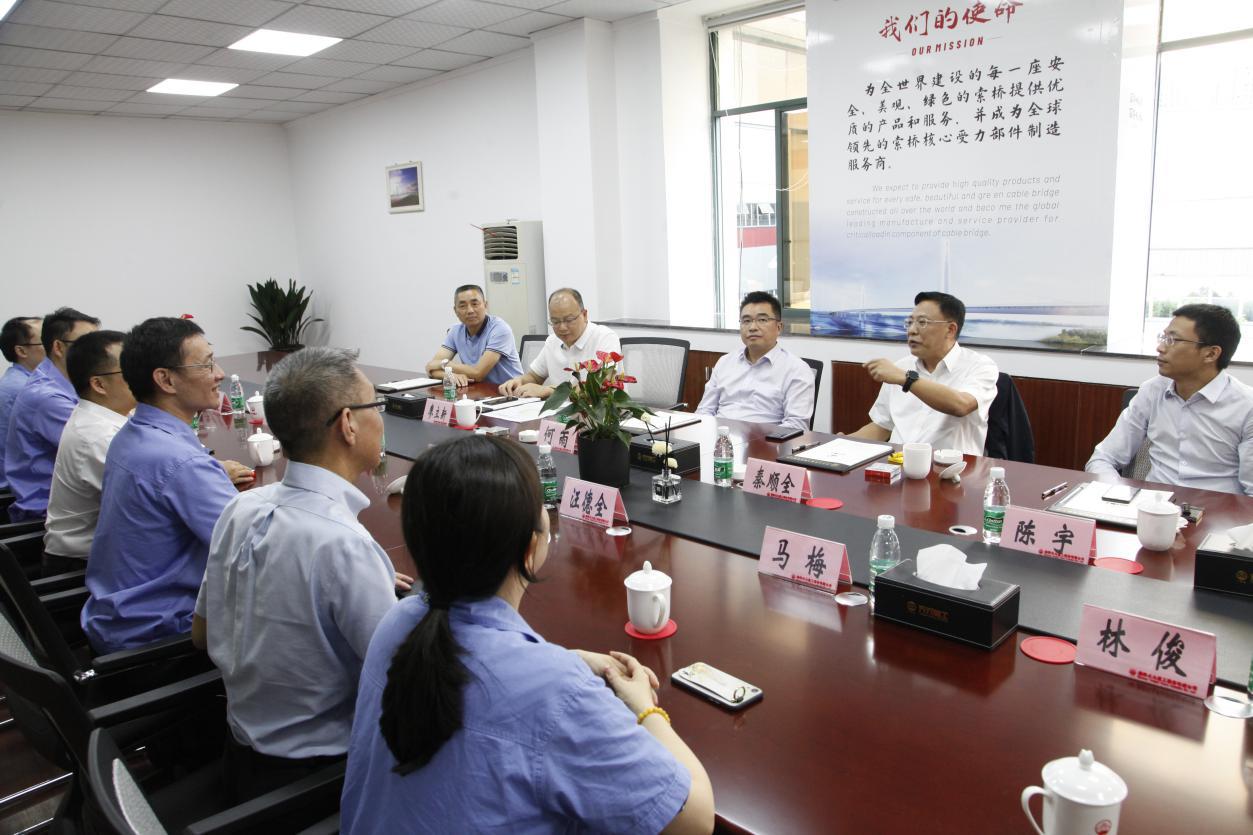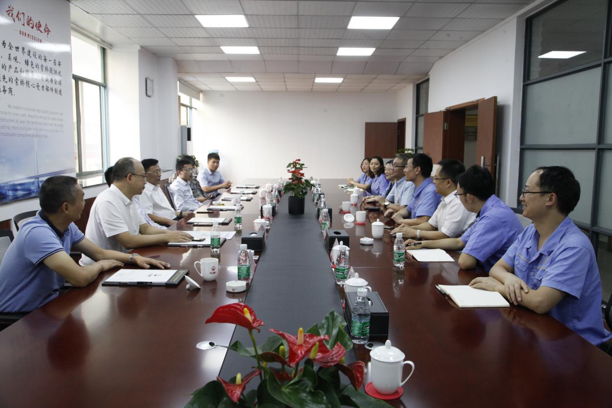 隨后,秦院士及各位領導在公司董事長的陪同下來到公司四樓會議室進行了座談交流,座談會上,唐明董事長從公司的發(fā)展歷程、企業(yè)科研投入、技術研發(fā)創(chuàng)新情況、專業(yè)化工藝技術能力及生產(chǎn)制造能力建設、未來的發(fā)展規(guī)劃等方面,向秦院士及參會領導進行了詳細的匯報介紹。秦院士表示多年前就對天元重工有所耳聞了解,但今天到企業(yè)實地參觀后感覺比較震撼,百聞不如一見,對企業(yè)留下了比較深刻的良好印象。院士對天元重工走專業(yè)化企業(yè)道路和未來的發(fā)展規(guī)劃表示充分的肯定,對企業(yè)的技術研發(fā)、科研創(chuàng)新、專業(yè)化制造生產(chǎn)、由傳統(tǒng)加工制造向數(shù)字化、智能化轉型等方面所做的工作及取得的成績給予了高度評價,重點對企業(yè)的研發(fā)創(chuàng)新工作及后續(xù)的發(fā)展建設提出了非常獨到的指導意見。同時,秦院士提出我國目前正在大力發(fā)展建設鐵路懸索橋,而鐵路懸索橋相對公路懸索橋而言,工況更復雜、建造技術難度更大,索鞍、索夾等受力部件產(chǎn)品的制造技術和質(zhì)量要求更高,目前中鐵大橋院也正在新設計幾座鐵路懸索橋和公鐵兩用懸索橋,歡迎天元重工積極參與其中與設計院多交流多探討,共同推進中國鐵路懸索橋的建造技術水平和質(zhì)量水平的提高,為中國橋梁建設貢獻專業(yè)化企業(yè)的力量。