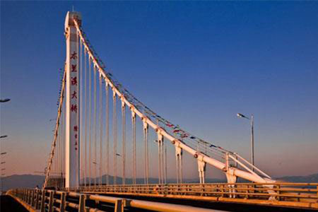 濟(jì)南鳳凰橋?yàn)槿藻^式懸索橋,主跨2×428米。...
