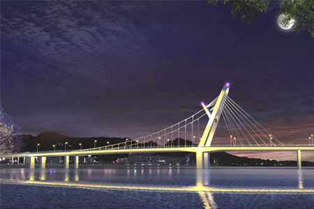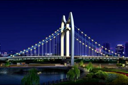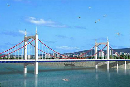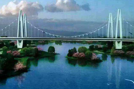 臨汾洰河橋為主跨168+168米的自錨式懸索橋。...