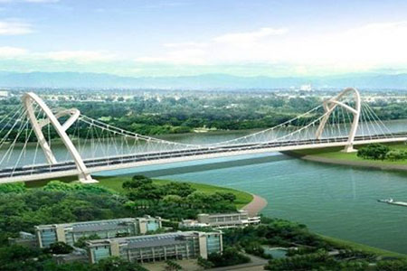 吉林霧凇大橋是雙塔自錨式混凝土懸索橋,全長991米、寬32米,自錨式混凝土...