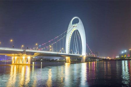 獵德大橋主橋為獨塔雙索面空間自錨式懸索橋,采用47米+167米+219米+...